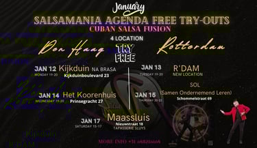 Our Cuban Salsa Fusion classes kick off from the week of January 13th and run until December 17th. Over the course of 11 weeks, you’ll enjoy an exciting journey into the world of Cuban dance. Safe your spot at The free tryout session when we have it – don’t forget to sign up and register early to secure your spot!
